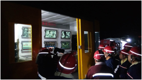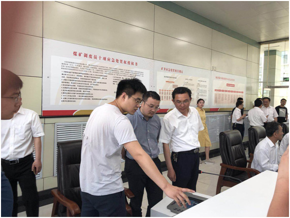 会前,与会领导首先参观了鲍店矿调度信息中心智能化工作面地面集控中心,王端武按下7302智能化综放采煤工作面一键启动按钮,井下现场采煤设备依次启动自动运转,现场响起热烈掌声,祝贺鲍店矿智能化综放工作面一次性开机成功。