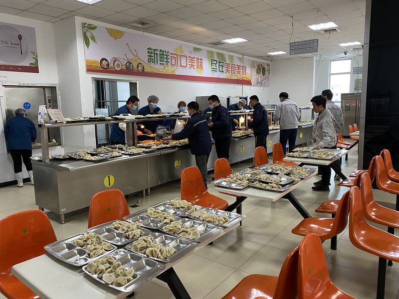 “张灯结彩迎新春,喜乐团圆吃饺子”——华宁的辞旧迎新从喜迎小年开始。腊月二十三,喜庆的大红灯笼高高挂起,五彩斑斓的彩灯准时点亮,浓浓的新春氛围驱散了疫情带来的恐惧与不安。热腾腾的饺子,飘香中透着精心,精心中带着温情,配上2021年最受华宁人喜爱的“口水鸡”,营养爽口的素什锦,一道道美味不仅让奋战在岗位上的员工大饱口福,更让大家真切地感受到来自华宁的厚爱。